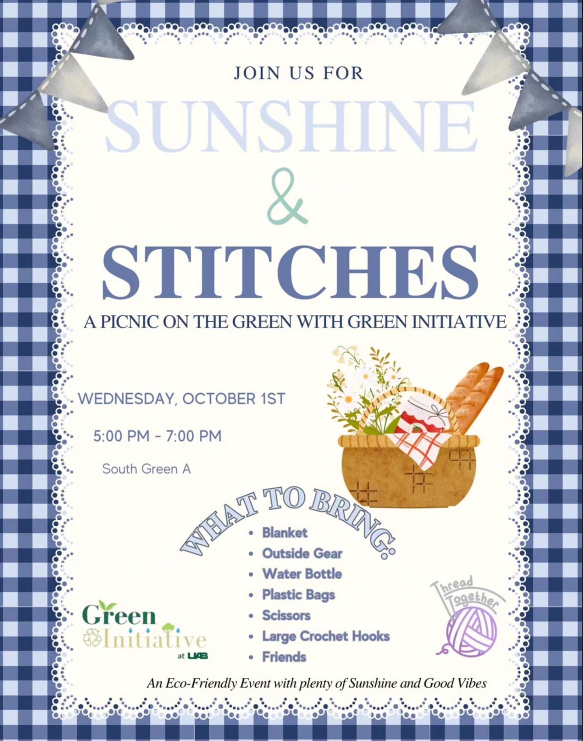 Those who weren’t able to join us, don’t worry because we have another fun event this week. We are collaborating with Thread Together this Wednesday from 5-7 pm to host a picnic where we will be crocheting with plastic bags! Check out the flyer below to learn more: